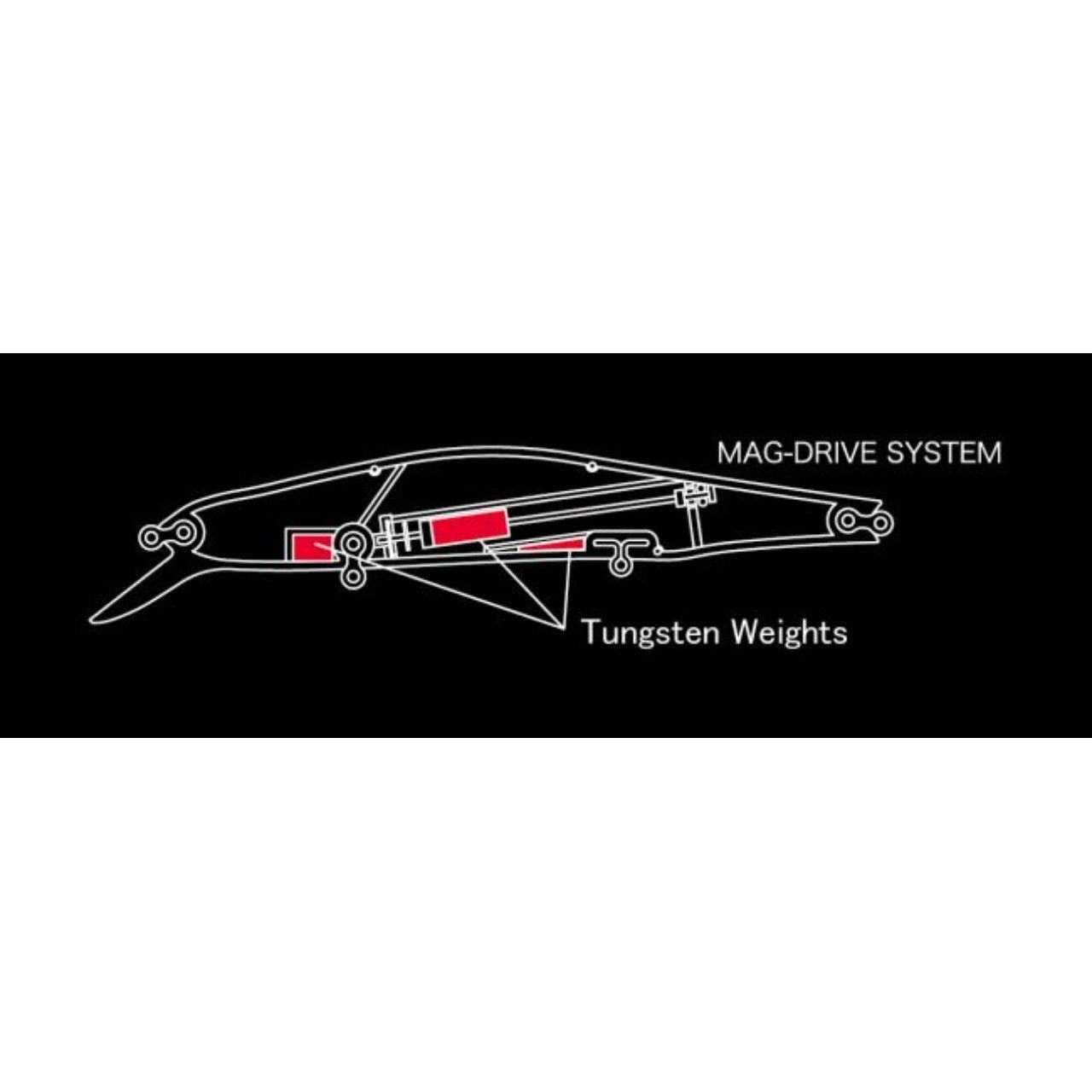 Запатентованная система балансировки с вольфрамовым грузом позволяет легко забрасывать приманку на большие расстояния и обеспечивает идеальную балансировку при различных техниках анимации. Подвижный латунный цилиндр в головной части корпуса дополнительно утяжеляет приманку и смещает центр тяжести к носу, что придает игре воблера уникальные и характерные движения.